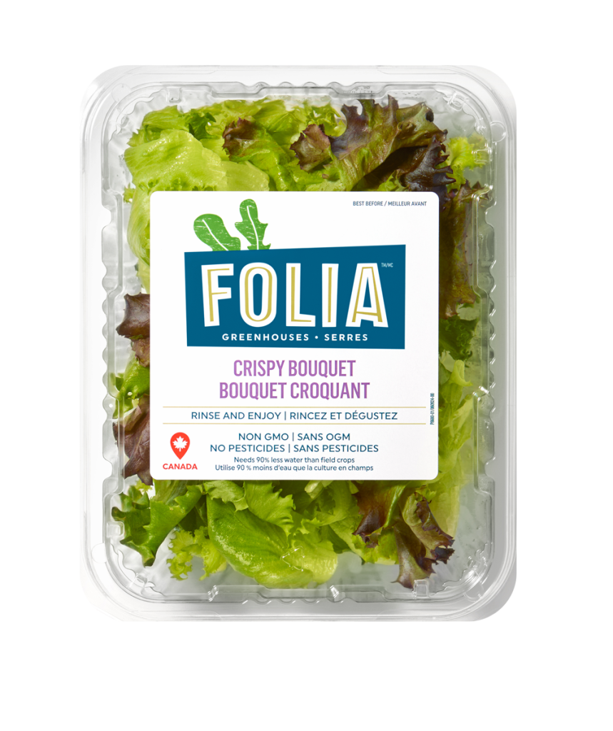 Folia te propose deux variétés de laitue : Laitues croquantes et Bouquet croquant. Disponibles en deux formats, 113 g et 227 g, Folia t’en fera goûter de toutes les saveurs.